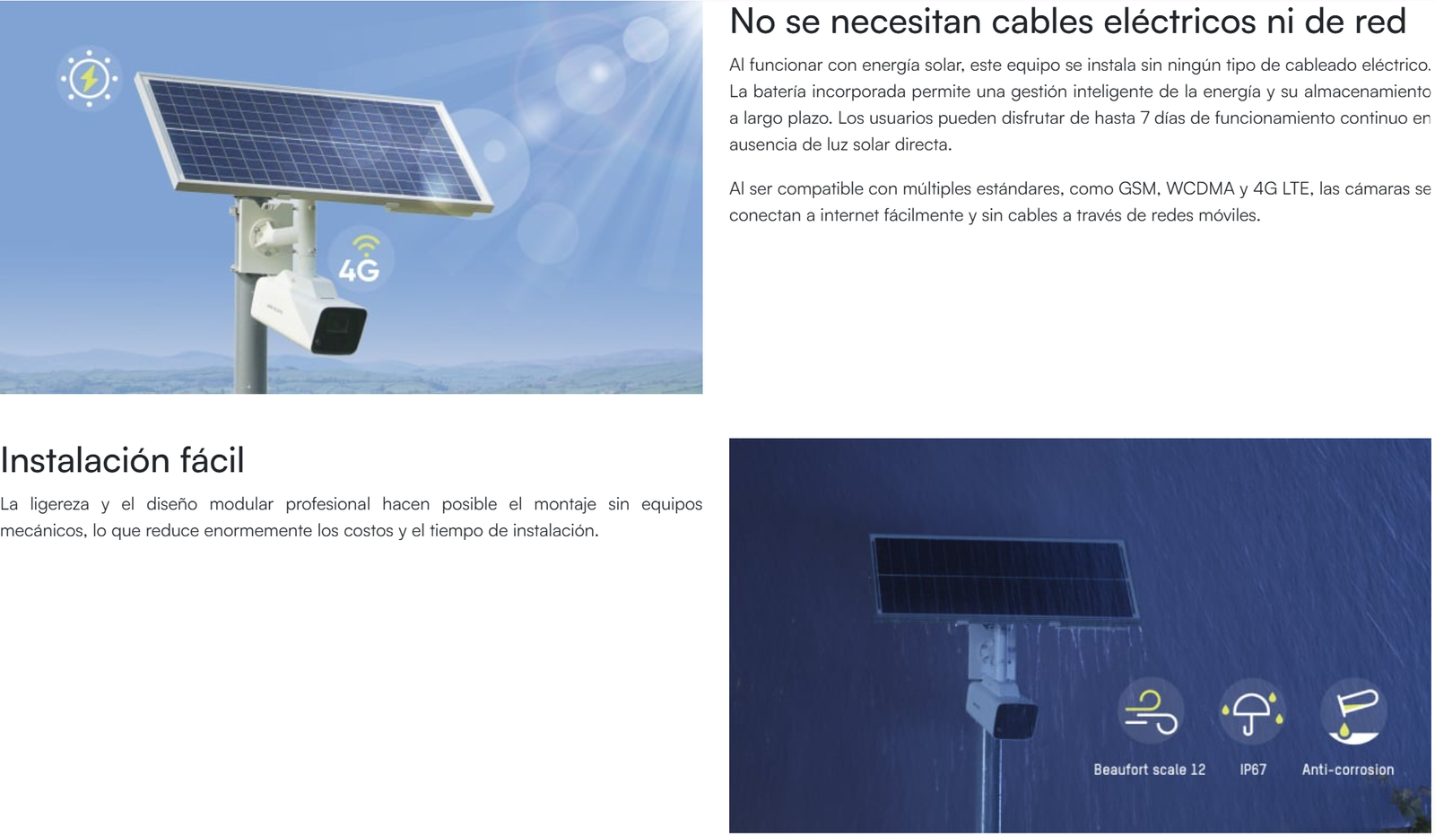 Incluye: cámara, panel solar, batería de respaldo, montaje de poste, brazo para camara y panel.